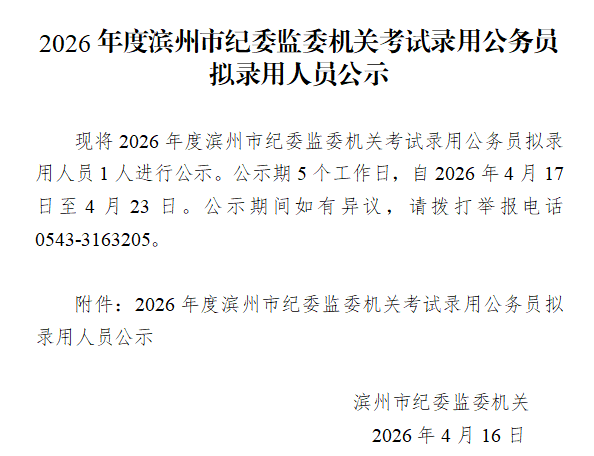 原标题:2026年度滨州市纪委监委机关考试录用公务员拟录用人员公示
