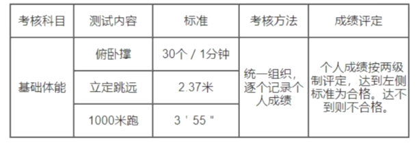 体能测试时间、地点另行通知。