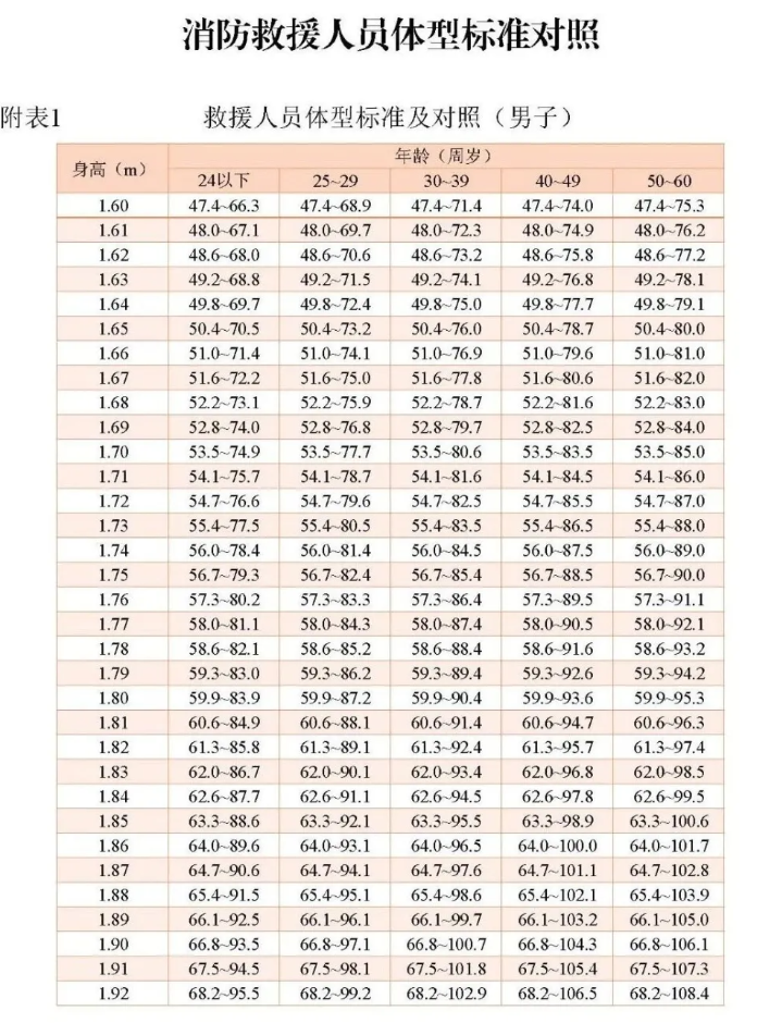 2.消防救援人员体型标准对照表