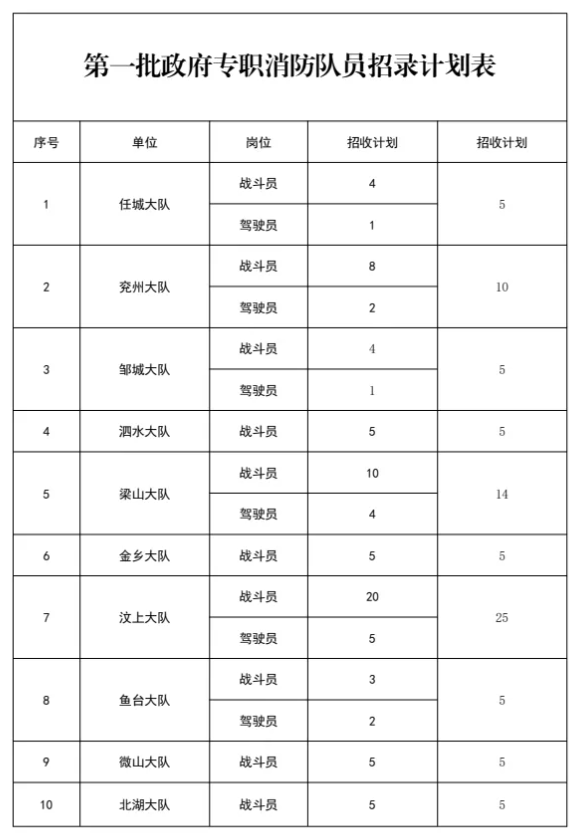 3.第一批政府专职消防队员招录计划