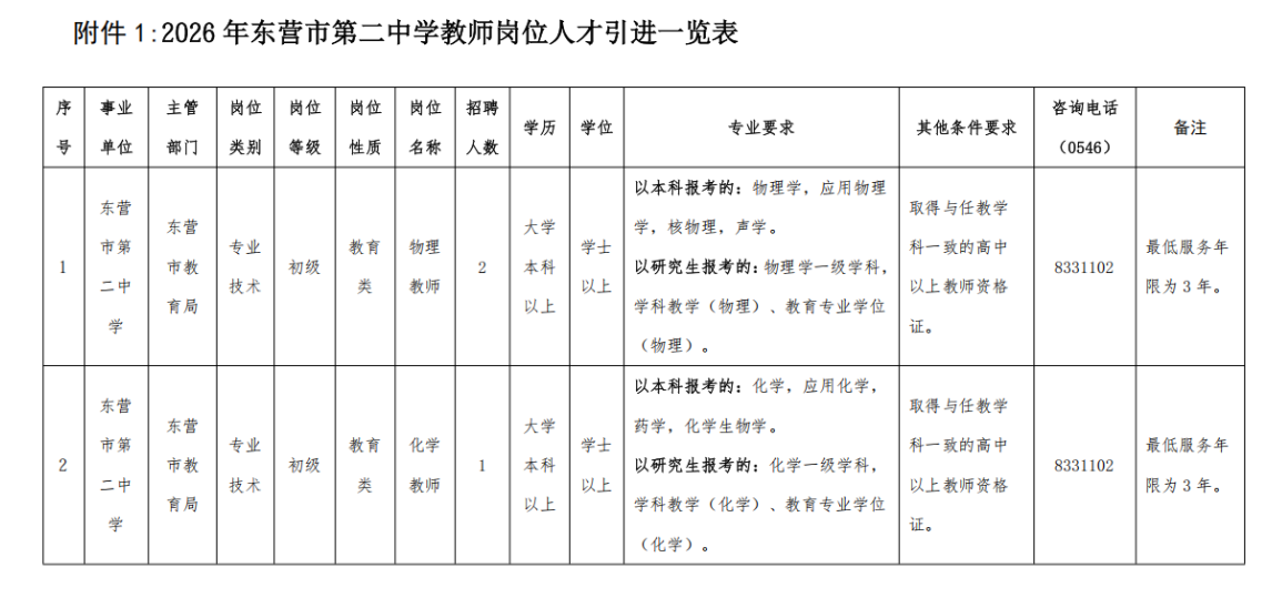 原标题:2026年东营市第二中学教师岗位人才引进公告