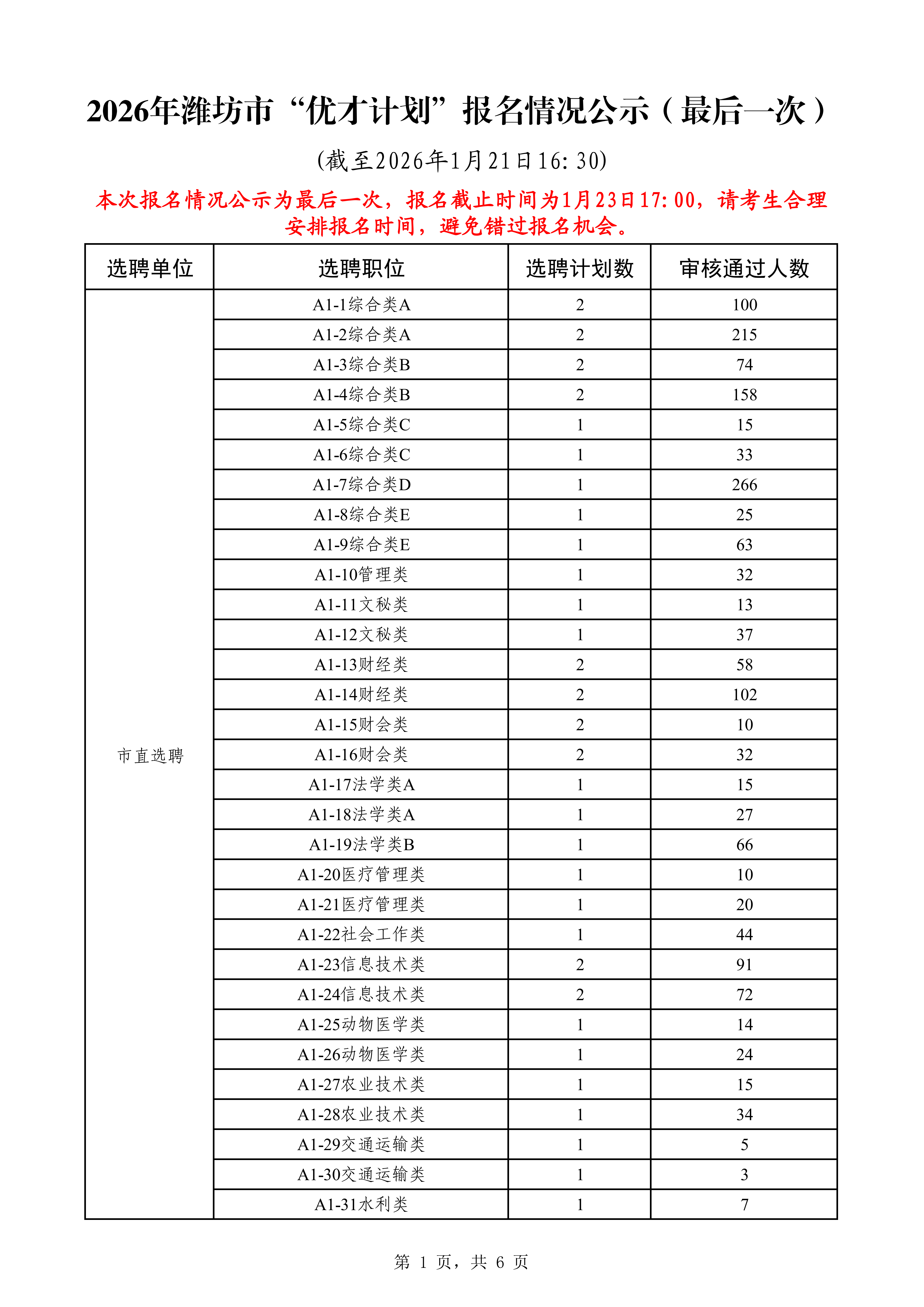 原标题:2026年潍坊市“优才计划”报名情况公示(最后一次)