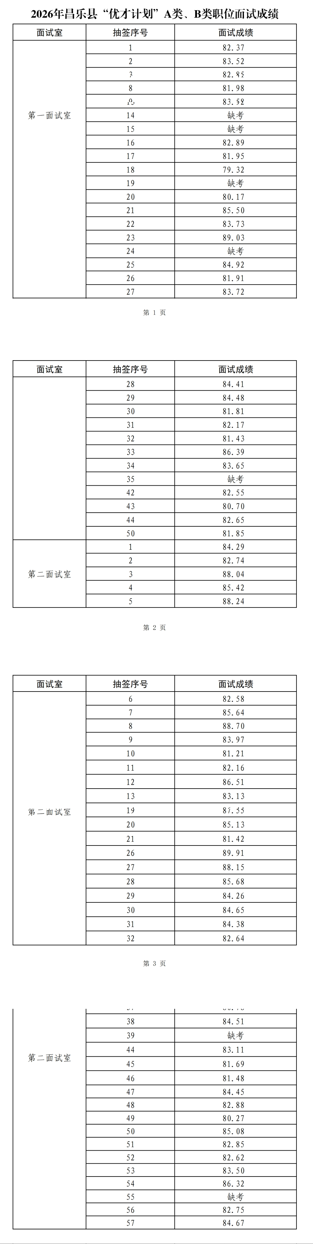 原标题:2026年昌乐县“优才计划”A类、B类职位面试成绩