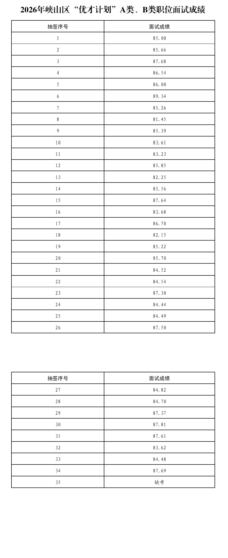 原标题:2026年峡山区“优才计划”A类、B类职位面试成绩