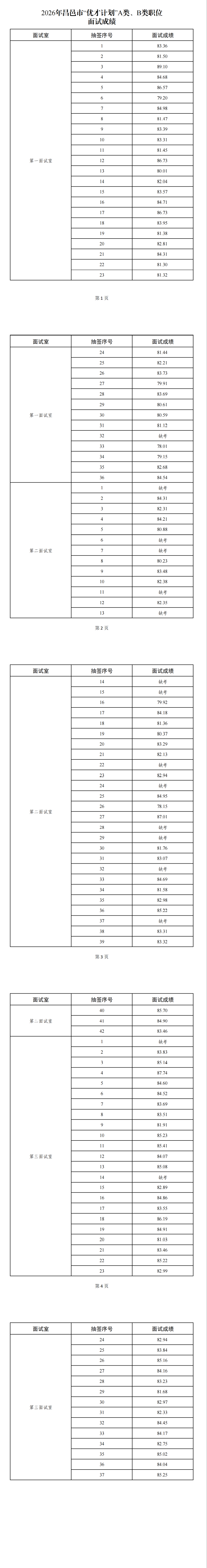 原标题:2026年昌邑市“优才计划”A类、B类职位面试成绩