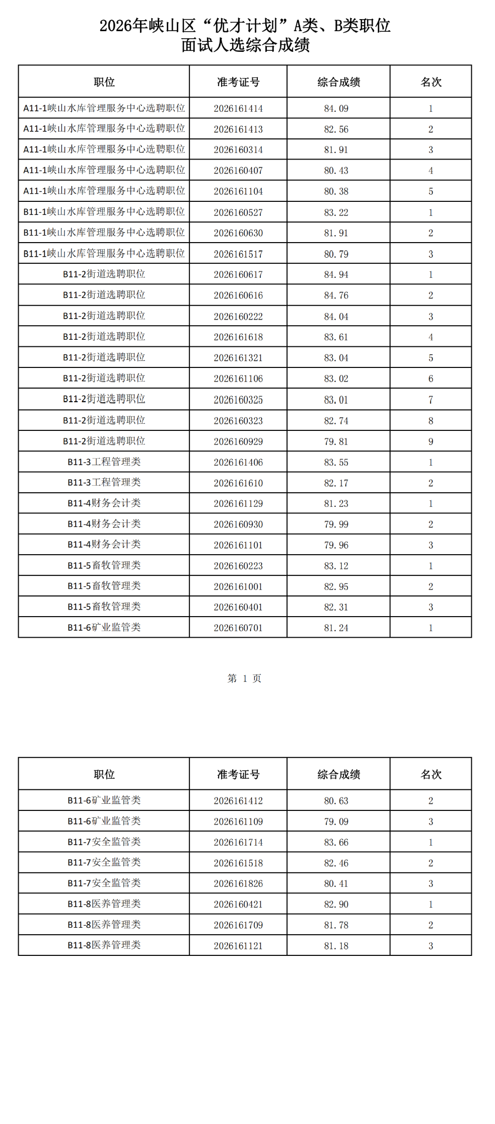 原标题:2026年峡山区“优才计划”A类、B类职位面试人选综合成绩