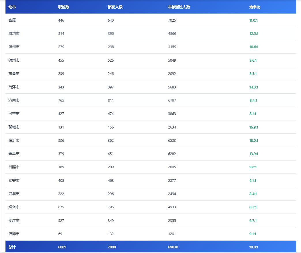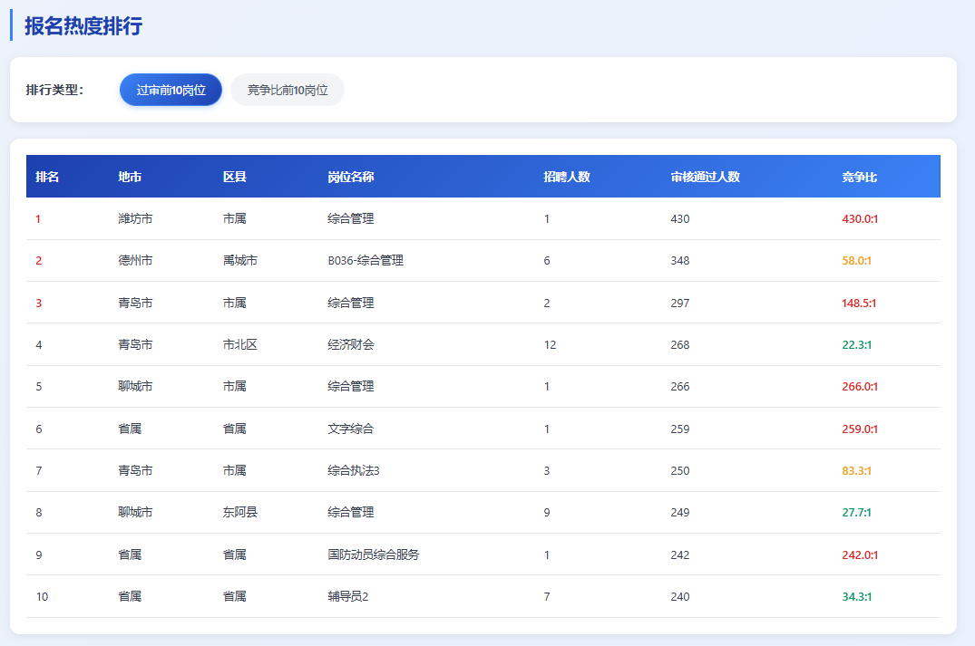 过审最多岗位:潍坊市市属综合管理(430人过审)