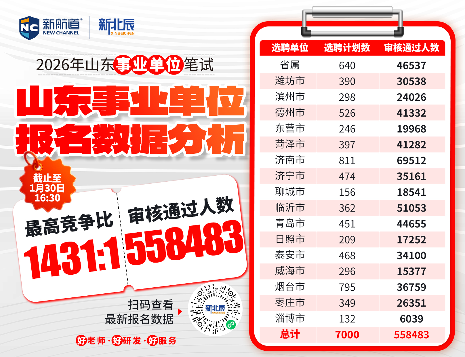 点击查看:2026山东省事业单位招聘报名人数统计「截至1月30日16:30」