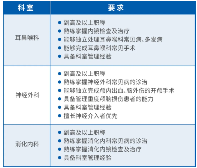 · 学科带头人需具备丰富的临床技术能力与科室管理经验。
