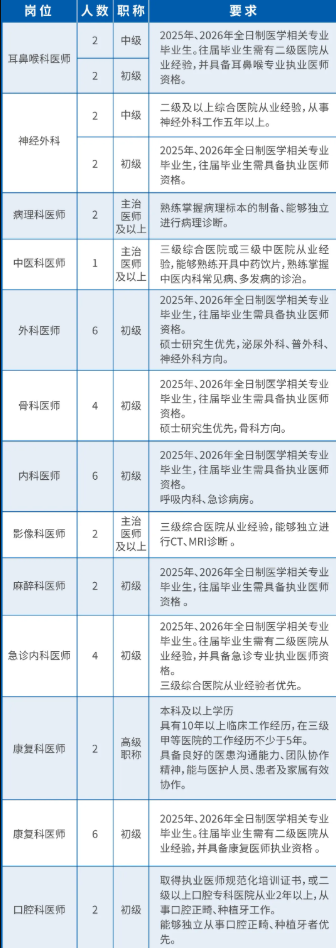 我们期待与心怀理想、医术精湛的您相遇,共同守护生命健康,传递医疗温度。